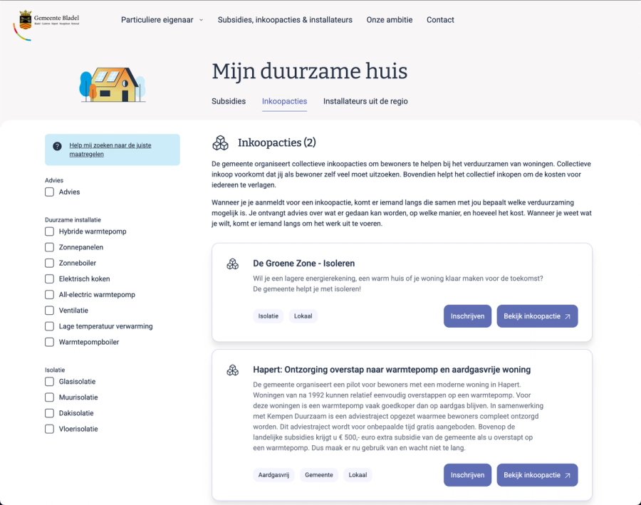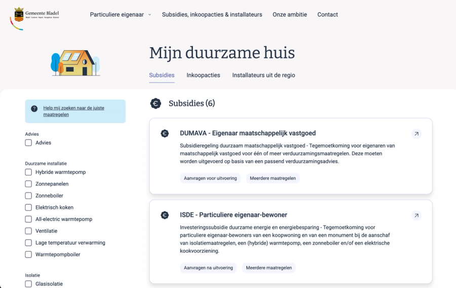 Afgelopen maanden hebben we met het SIMDO team hard gewerkt aan het In opdracht van de gemeente Bladel en in samenwerking met de Warmte Transitie Makers hebben wij het digitale platform Duurzaam Bladel ontwikkeld. Dit platform biedt inwoners van de gemeente Bladel concrete handvatten om hun woning te verduurzamen en draagt bij aan de ambitie van de gemeente om in 2050 energieneutraal te zijn.
