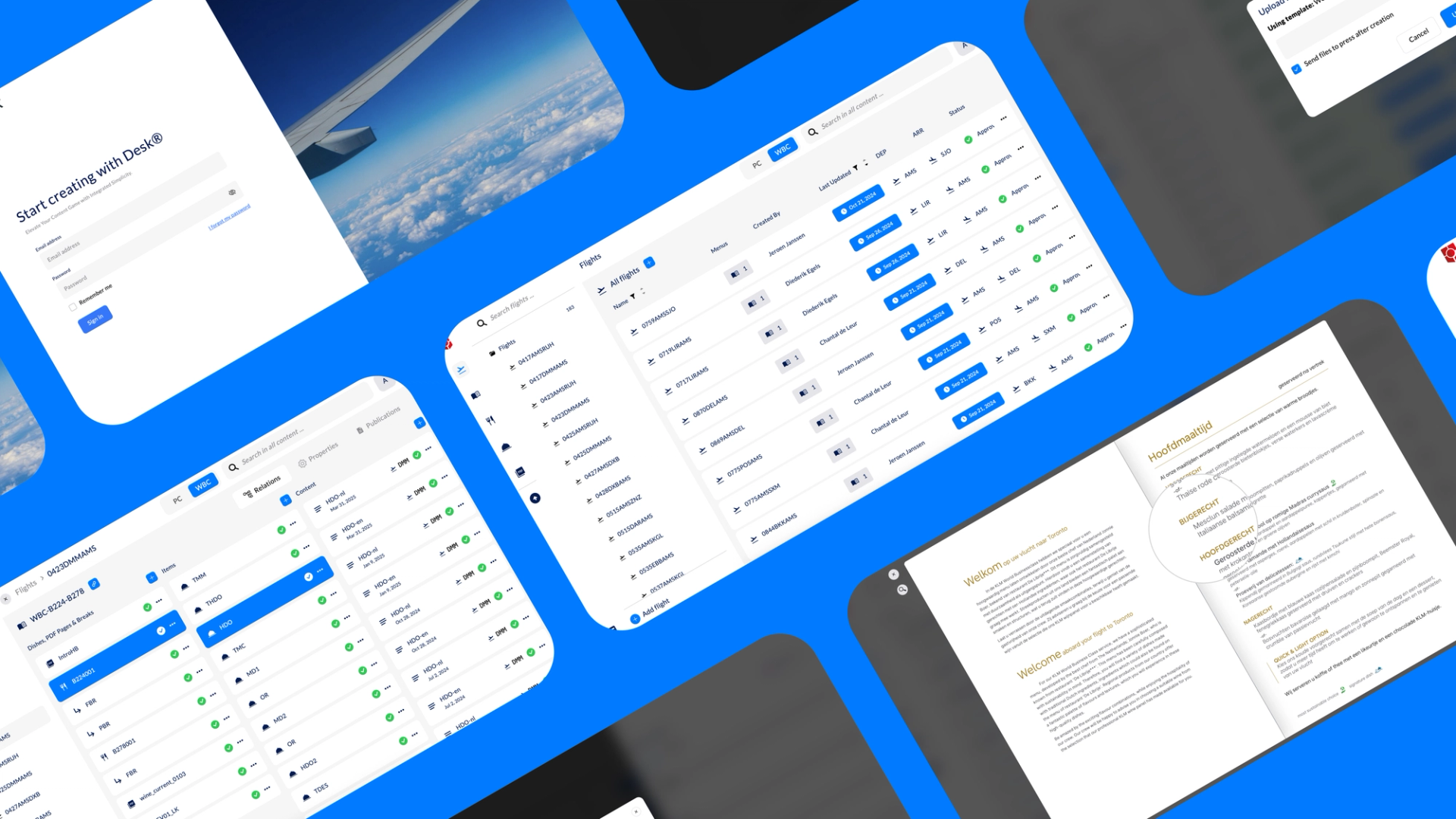 Voor KLM heeft SIMDO een maatwerk contentmanagementsysteem ontwikkeld: DeskCMS. Dit platform is specifiek ontworpen om het volledige proces rondom de menukaarten aan boord van vluchten te stroomlijnen – van creatie tot productie. Waar traditionele processen vaak handmatig en foutgevoelig zijn, zorgt DeskCMS voor een efficiënte en geautomatiseerde workflow die dagelijks operationeel is.