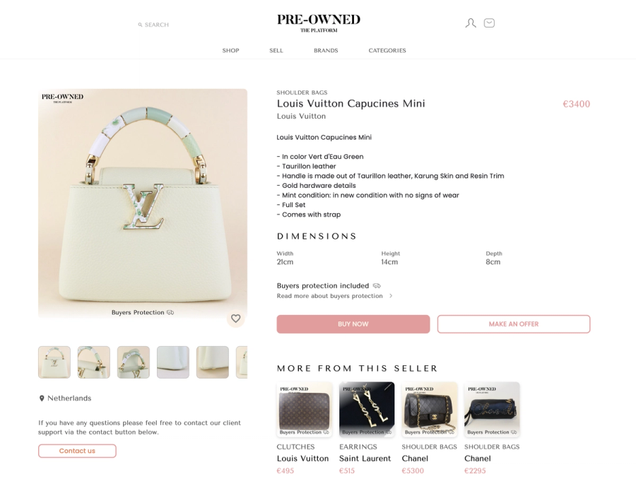 Pre-Owned the Platform is een innovatief platform, ontwikkeld door SIMDO, waarop gebruikers authentieke tweedehands designertassen en accessoires kunnen kopen en verkopen. Of je nu droomt van een klassieke Chanel, een tijdloze Louis Vuitton, of een luxe Hermès, alles is binnen handbereik op Pre-Owned the Platform.
